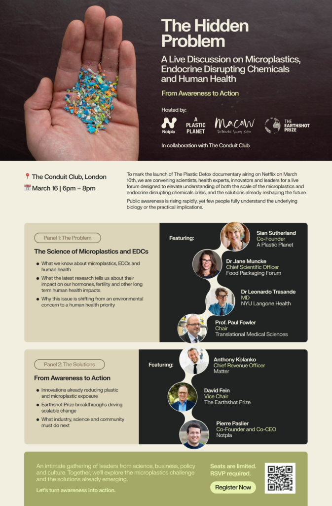 On 16 March, Prof. Paul Fowler, PI from partner institution University of Aberdeen, joined a panel at London’s Conduit Club for the The Hidden Event. Hosted by A Plastic Planet and The Earthshot Prize, the event marked the launch of the Netflix documentary The Plastic Detox, focusing on the intersection of plastic-related chemicals and human development.